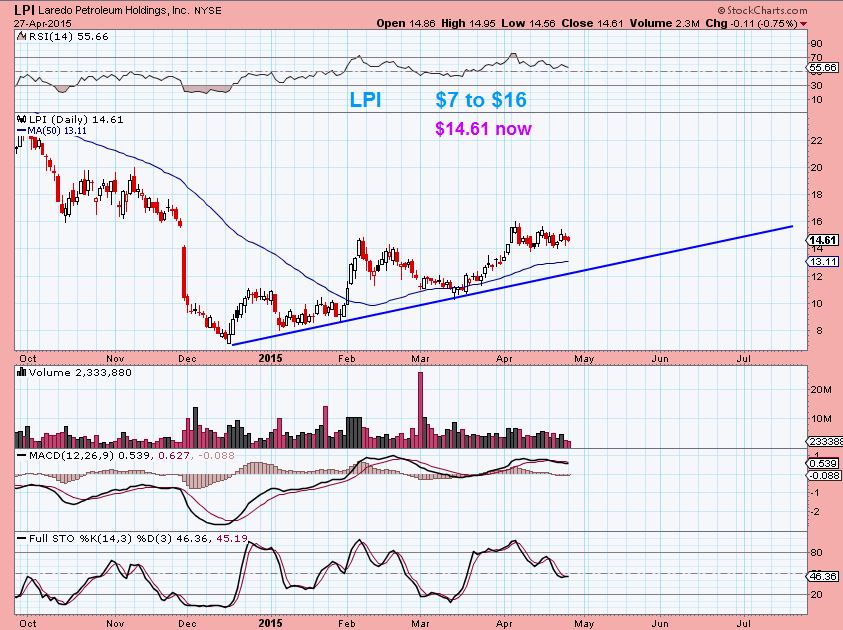 I mentioned that I like the look of LPI this week, because of the higher lows . I said this looked ready to break higher at $14+…