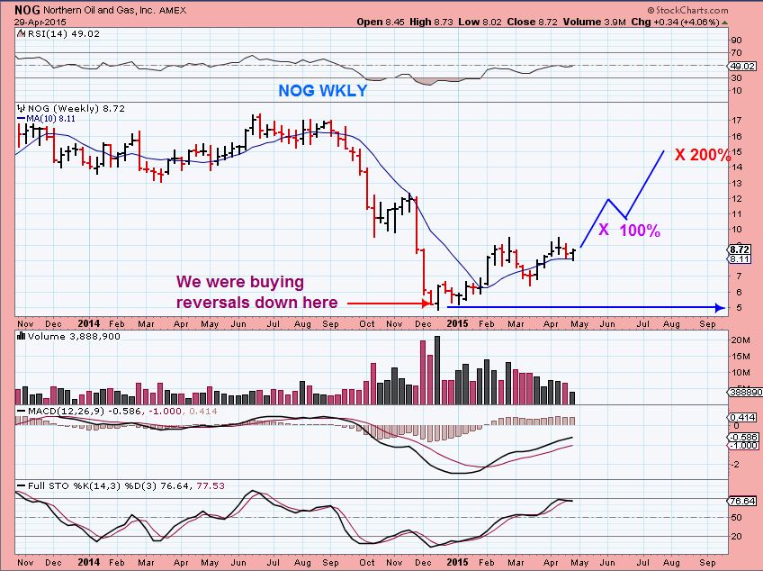 NOG WKLY – you can see that if you can ride the dips  ( or buy the dips) , in time this recovery can be rewarding.  Almost 100% now, 200+% later. Patience pays off.