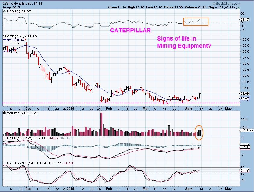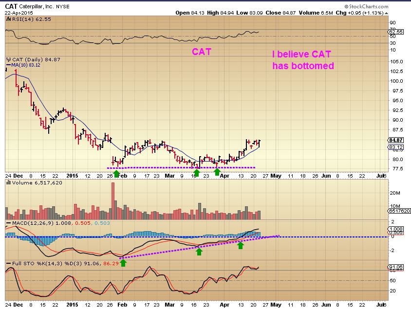 I posted this chart of CAT on April 10, it has moved higher since then. Watch for it to start trending higher too.