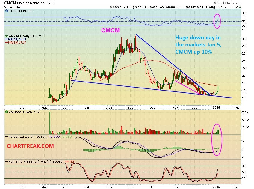 CMCM– Dec 26 – I LOVED this very tight base about to break out (Price $15.50), we could Double I said, reaching $30.