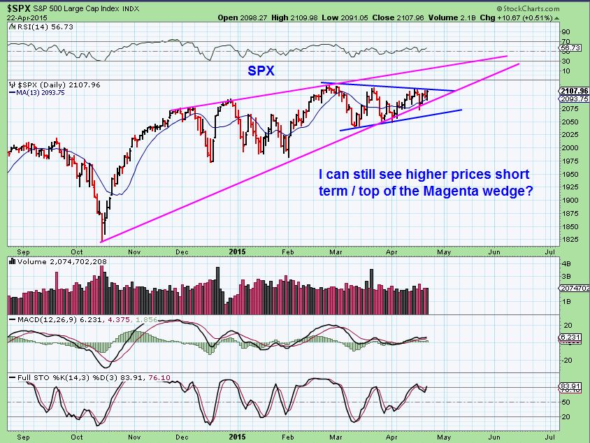 SPX futures are down as I write, but there is still upside possibility short term, if this breaks out.