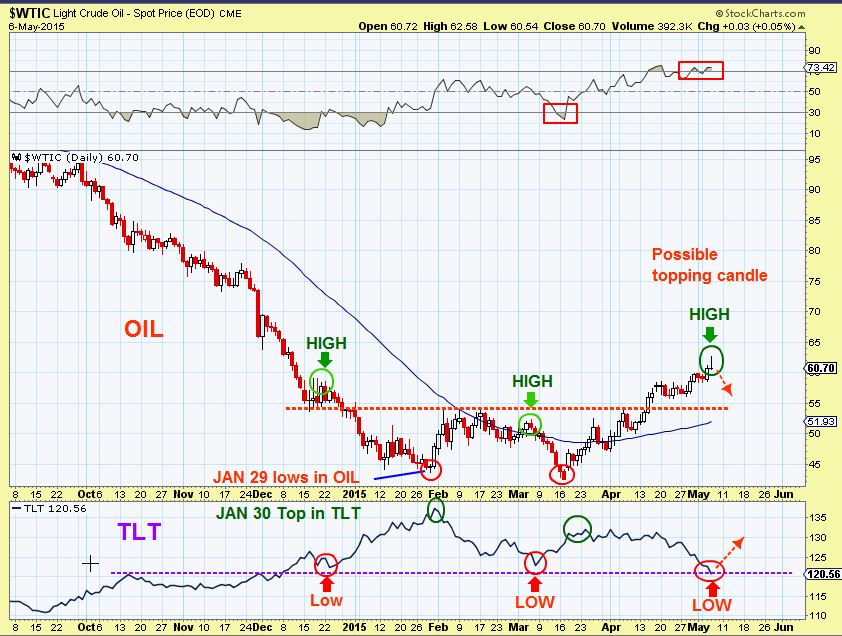 Oil continued its climb- but reversed and looked like a topping candle ? JUST A TEMPORARY TOP or sideways move again, I think OIL is fine.