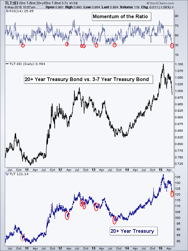 Bonds have tended to rise when TLT reationship with 3-7yrs is as now