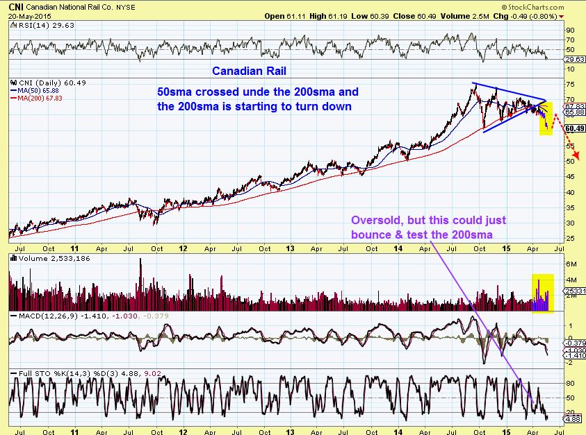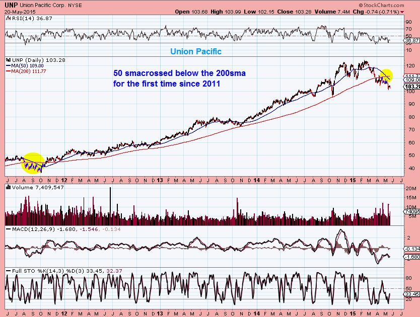 Check out how  UNP, CNI, CP, KSU, NSC, GWR etc have damage. The 200sma is turning  down too.  2 examples below: