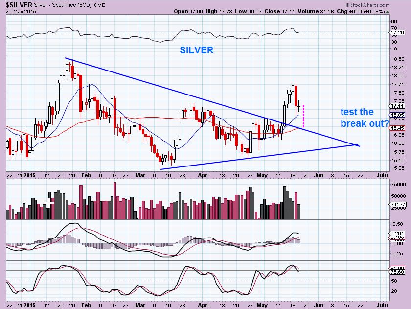 SILVER –  this actually looks like it wants to drop further.  It doesnt have to , but it has that look.  If silver drops further,  I would expect GOLD to drop too.  Silver is at $17.11  and the 50sma is near $16.50.