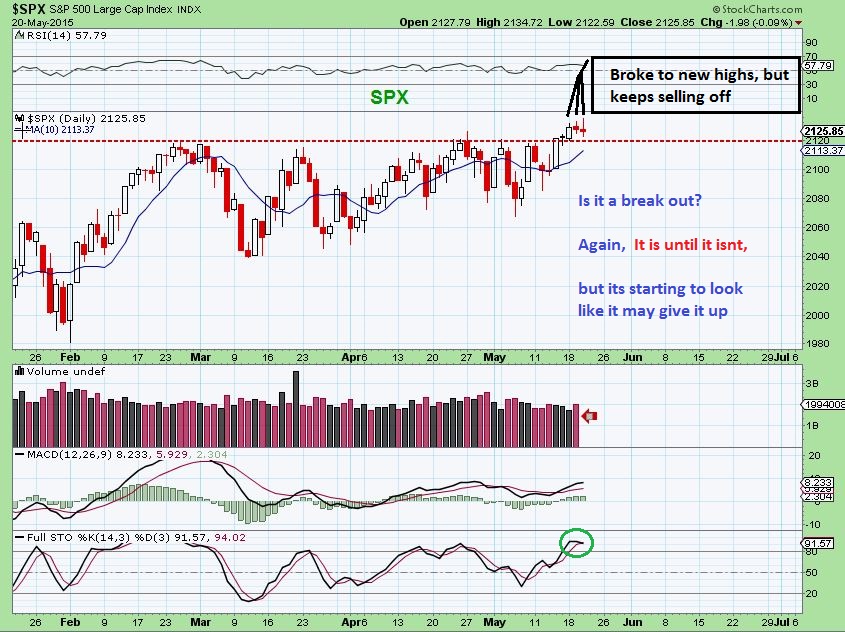 So that is not only what I see,  but it’s also a lot of what is on my mind.  Unfortunately it is a bit of a mixed picture out there.  I see some great set ups, I see many stocks breaking out of consolidations and running higher .  Even the SPX has broken out to new highs…so I have to report that.   At the same time I see these bigger picture Bearish looking rising wedges and a break down in transports.  I have been mentioning since January that GOLD / OIL look like they were bottoming and we traded those. Then it was the CRB double bottom and NATGAS that bottomed and it started to seem like Commodities are bottoming and basing,  so could the equity markets could be getting toppy?  Or could we finally get a correction ?   Is the Dollar going to double top & roll over , allowing these things to take place?  Time will tell,  and we here at Chartfreak will try to stay ahead of the changes.    Today and Friday will be the end of trading before the long weekend in the U.S..     The markets are closedon Monday, so I dont expect anything crazy,  but some may chose not to hold over the long  weekend.   I will be away Friday, so I will have a weekend report to wrap up the full weeks activities.