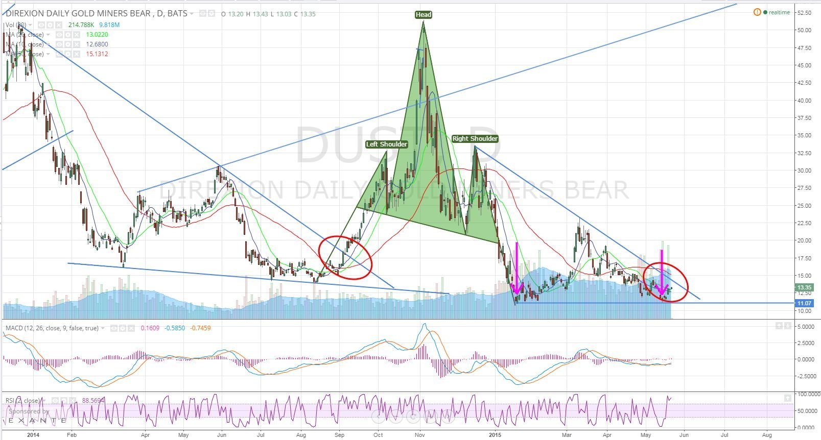 I think DUST is getting ready to move higher. Look at the two red circles on the chart below, similar?