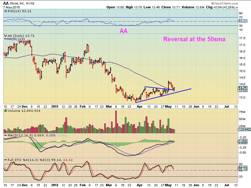 CENX has the moving averages bunched up below it at $13.75 area, but its still held down by the 50sma. For some, they may want to wait for a break above the