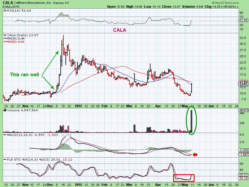 Biosciences CALA- Big moves when it runs, may want to check the news, this move looks real with short covering and likely follow thru. You can watch it and buy a pullback if one comes.