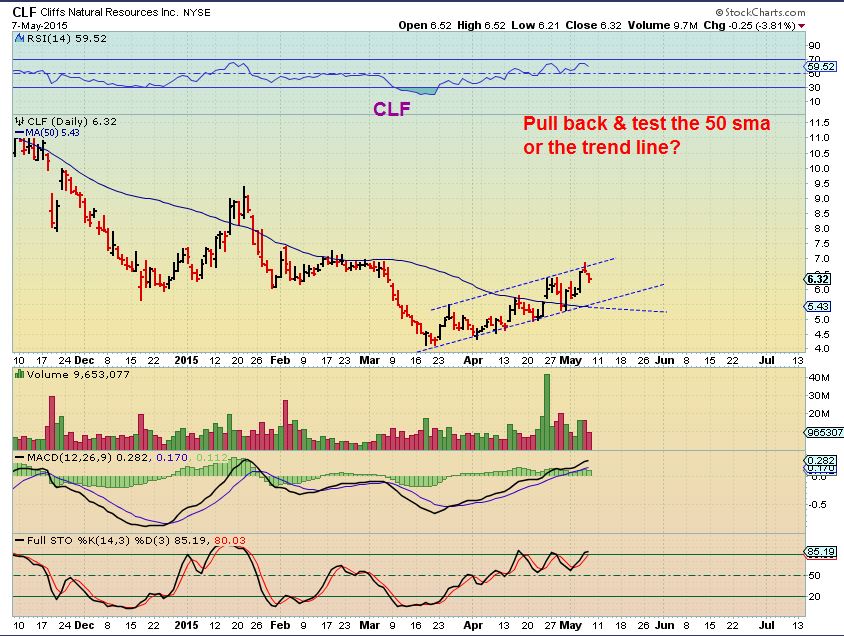 CLF ( This was MAY 7. It pulled back further Friday, setting up for a buy I.M.O. )