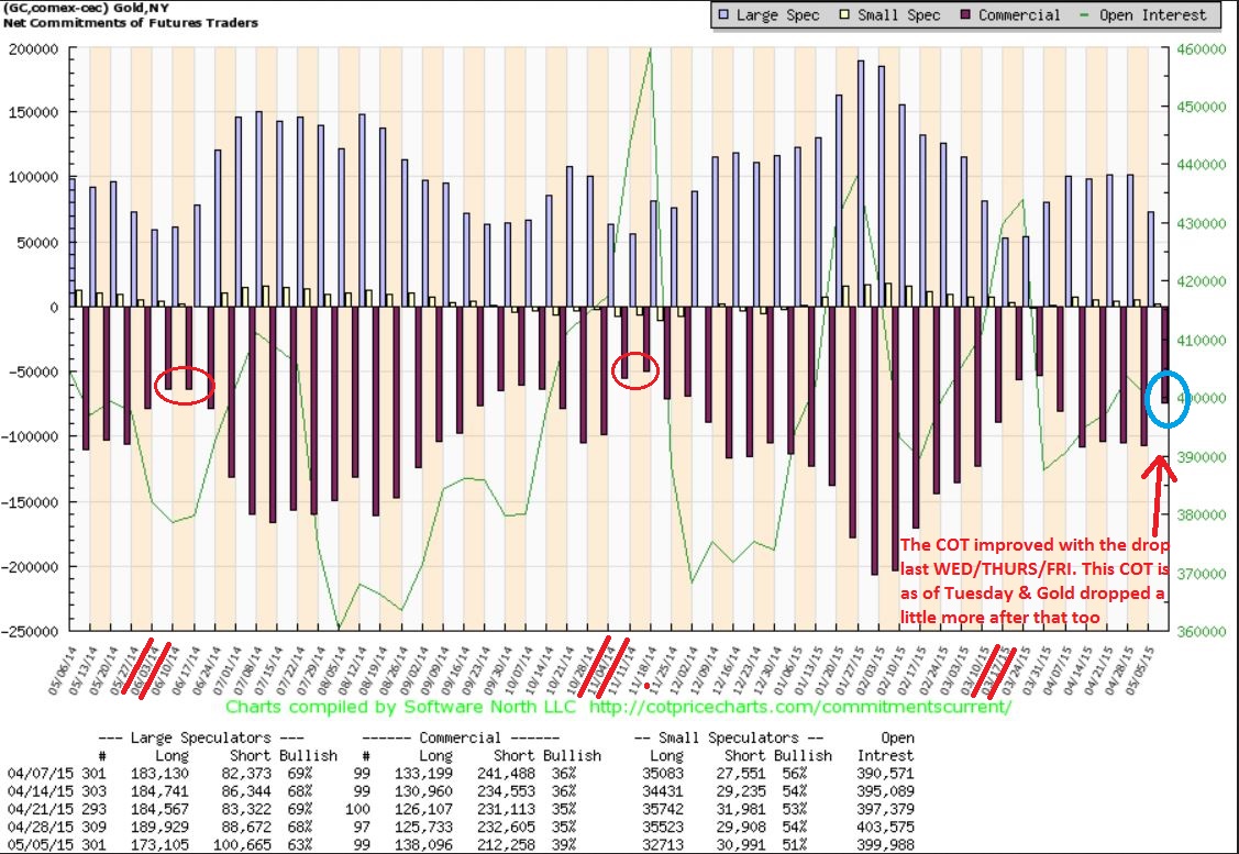GOLDS C.O.T. got a bit more Bullish with recent selling.