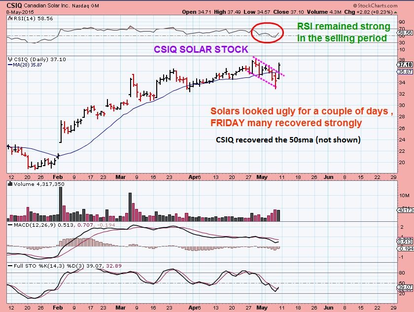 Believe it or not…Our SOLAR STOCKS dropped big Thuursday and recovered Friday! They looked bad Thursday, now they look like bullish recovery.