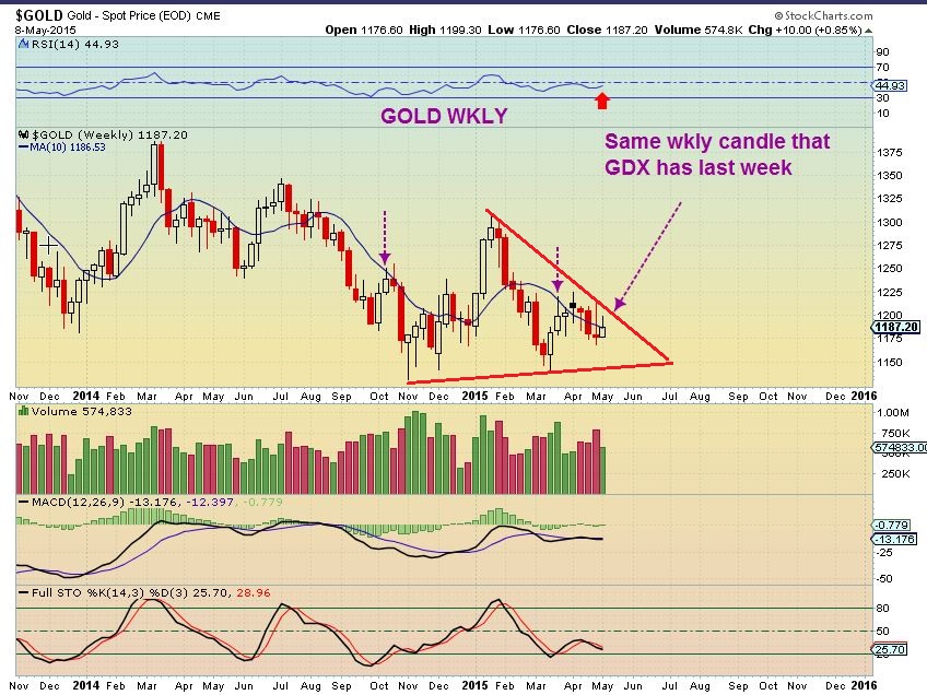 GDX WKLY….HMMM, TRIANGLE. In last weekends report, I pointed out that in 2000 at THE LOWS in Precious metals, MINERS bottomed 6 months before GOLD. They bottomed and Gold actually fell to fresh lows in April 2001, so keep that in mind. A break above this triangle could point to the FINAL LOWS for Miners being in as of Nov 2014, even if GOLD dips again. I say this because, also mentioned in that report, many Miners are showing strength.