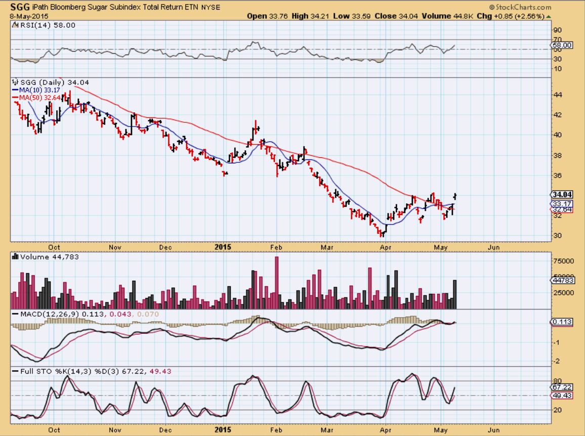 JO / DAG / the CRB, WEAT, SGG all look bullish to me, as having bottomed and moving higher. Some just starting, but others a tad extended, so for the extended ones I look for a pullback to the 10sma and buy with a stop a little below. Lets look at a couple of charts.