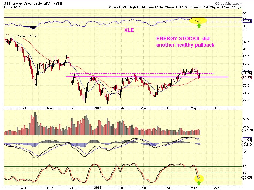ENERGY STOCKS sold off last week , but they reversed higher again Friday . Many look Bullish, and this chart of the XLE is interestingly bullish again. Oversold, reversed off of support, RSI 50 recovered.