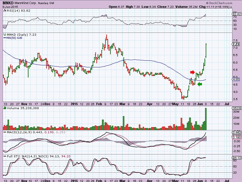 You may recall that I bought this reversal set up in MNKD. Let me walk you through this trade.