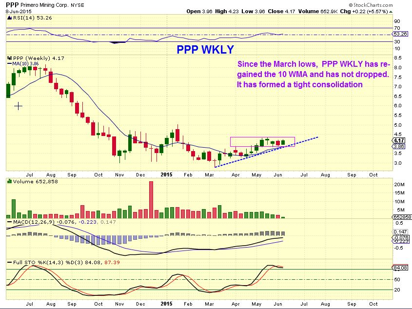 PPP DAILY – It was pinched between the 50sma and the 200sma. PPP has closed over the 200 sma for the first time in a while and soon could get the 50/200 cross . This was resistance. If PPP continues higher, the 200sma may now act as support .