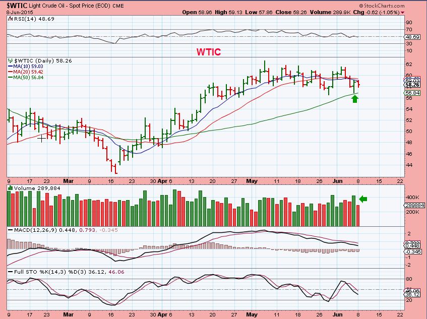 $WTIC – Not a big drop in oil , resistance at the moving averages. I expect higher price still, holding positions above the 50sma.