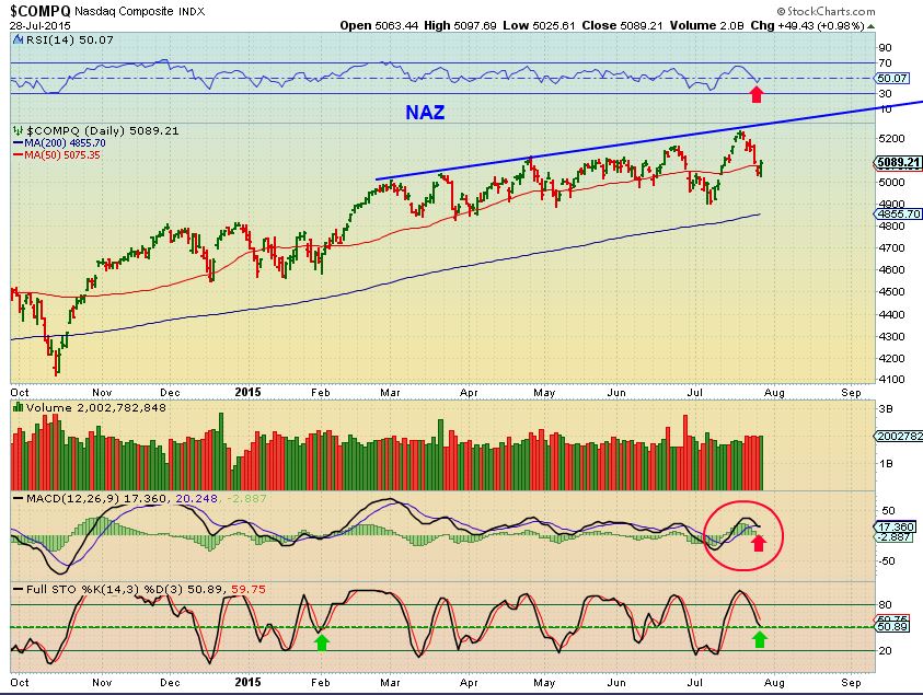 NASDAQ  – The NASDAQ has been making higher highs and the reversal at the 50sma looks good for higher prices.  Watch the blue line above as a potential target. A little  Fed follow through would be helpful.