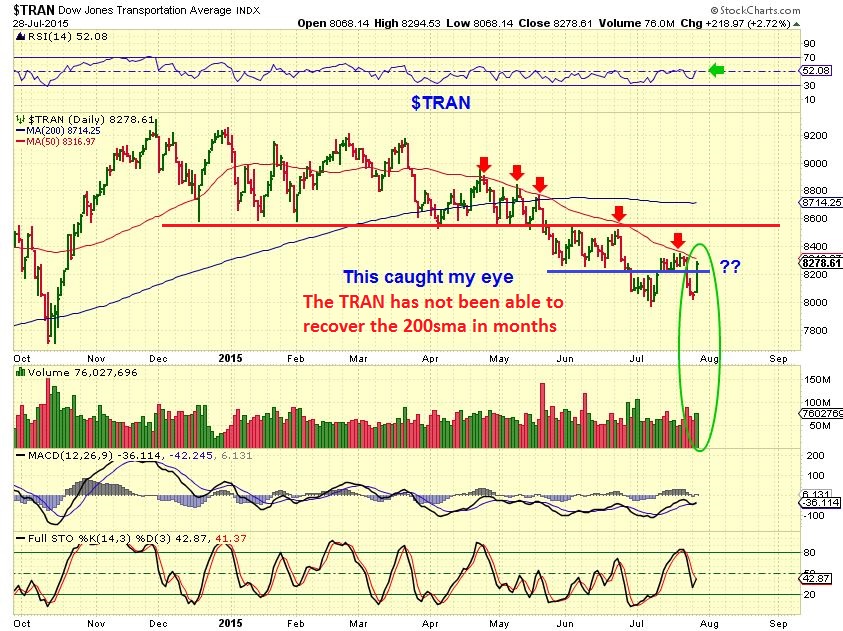 $TRAN – The TRAN caught my eye with this reversal.  It has been unable to recover the 200sma since breaking down, but this move looked like a good start. Can the FED make it or break it?
