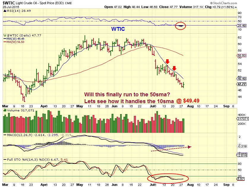WTIC – Reversal on Oil, but the 10sma has been holding it down.  Lets see if OIL can push back above the 10sma, then it may have a chance to run to the 50sma.