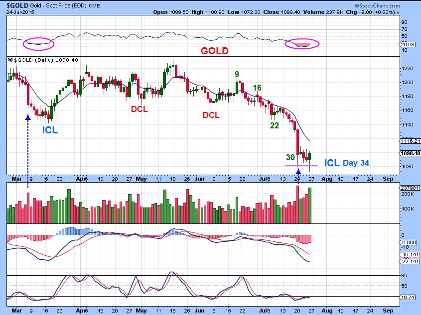 GOLD – LATE in cycle timing an undercut of the extreme volume lows, and a strong reversal amidst a lot of fear.  Many of my indicators are Beyond ICL levels.  Extreme bearish sentiment everywhere. I believe we saw an ICL  ( Deep trade able low).