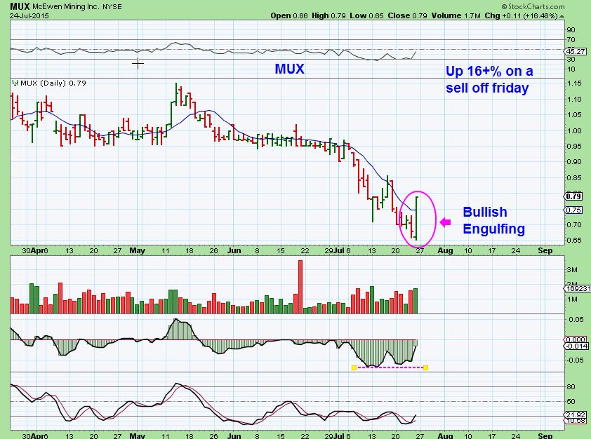 I saw Bullish Engulfing candles everywhere in Mines at the close Friday.   If there were 1 or 2 I’d feel more cautious, but SO MANY?  Lets take a look .  I posted a couple Mid-day ( I will post here) and show a few others.  This also gives confidence of a low.