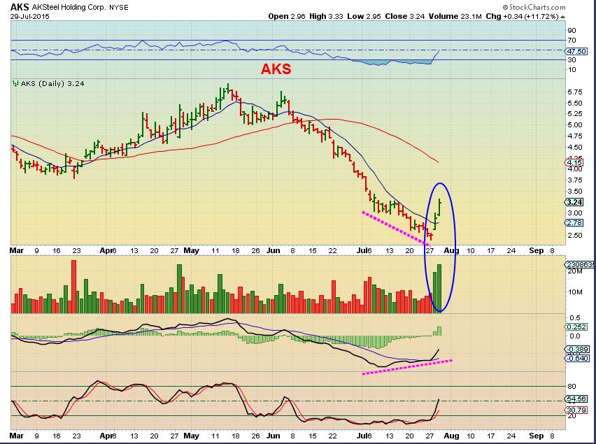 With the DOLLAR green, Many beaten down commodity stocks started to look good recently. Steel stocks have broken out strongly with volume X,AKS, STLD, and Aluminum stocks are starting to do the same see CENX, AA, NOR . Are they leading the way? Will Metals & Miners follow that course?