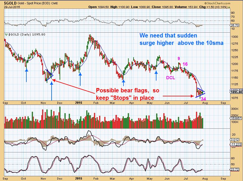 I gathered these charts and wrote most of this report late Wednesday night. Overnight we see that GOLD & SILVER were smacked down a bit. Gold went down $10 and Silver was down about $0.19ish. They havent broken any lows, but this keeps us on guard for further selling. We really would like to see a surge higher today or tomorrow, before going into the weekend.