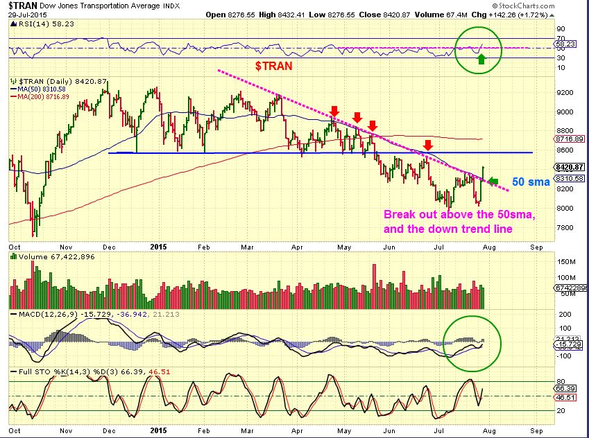 This is why I surprisingly see short term strength in the markets. I have been pointing out the break down in the transports. Suddenly we had a recovery Tuesday, and I pointed that out Wednesday.
