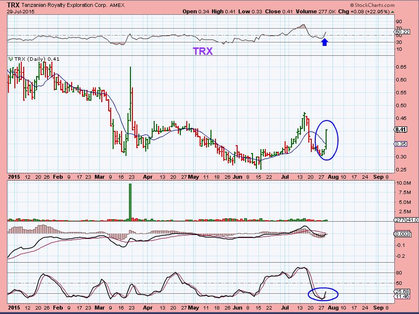 It is encouraging to see some of the miners looking like they are trying to break higher also. It is encouraging, but not enough at this point. We want to see that burst higher in the GDX & GDXJ to know that things are healthy through out the sector. We need to see more from the miners soon. See TRX, SSRI, AKG, NG .