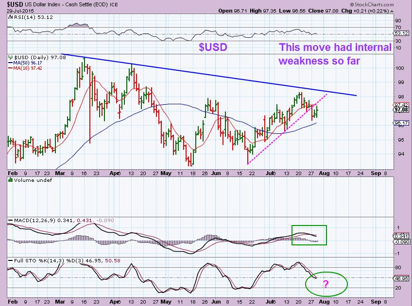 USD- many think the reversal looked strong. SO far it is ‘internally’ weak. I will be watching for it to strengthen or roll over soon.