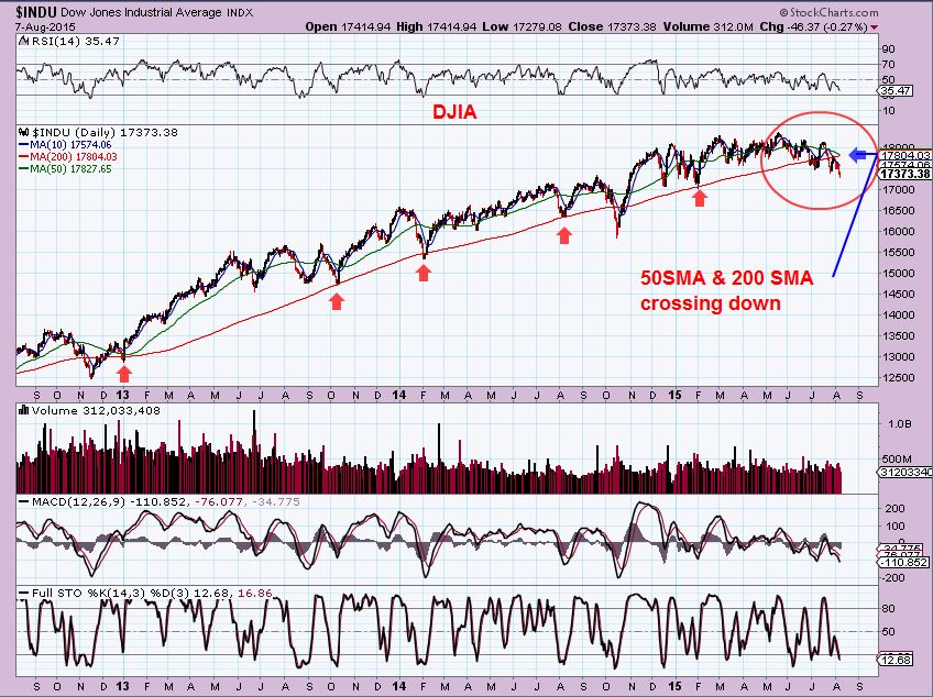 DJIA AUG 7 – Below the 50 & 200sma, the 50 is trying to cross below the 200 now