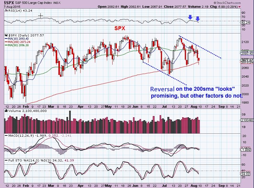 The SOX chart for 8/3/2015. I was showing how the semiconductors broke down and remained down.