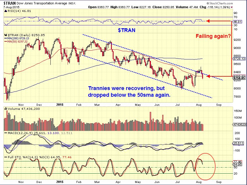 The TRANNIES look bad in a downtrend for months now. They started to look like they may recover last week, but have fallen below the 200sma again.