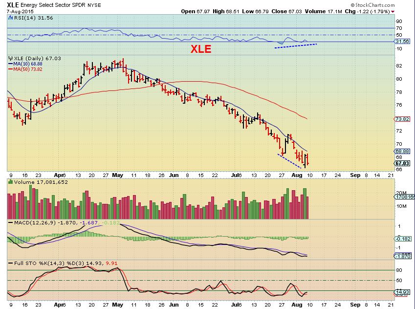 XLE – shows some divergence, but we need a close above the 10sma . We’ve seen a couple of “false starts” , so why dont we change that to a close above the 13 sma to get going. Some energy stocks started improving last week ( See REXX, LCGY, BAS, even WRES looks bottom like. Still risky at this point.
