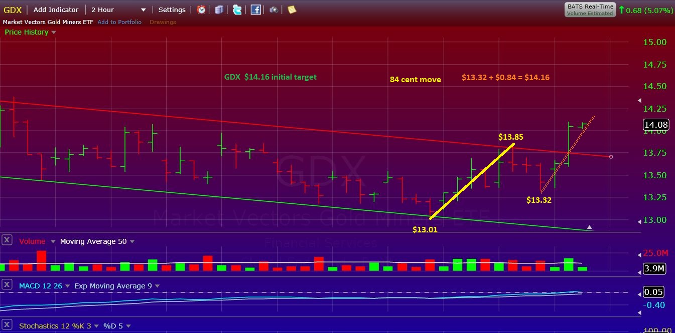 I had an initial target of $14.16 on GDX , and thats a simple A-B = C-D they can extend . Click for larger image