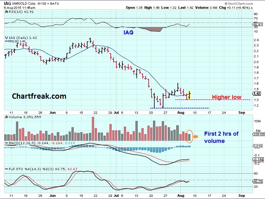 One other factor that I can mention for me personally is that if I am in front of the screen all day, and the day of the GDX low had 100,000,000 in volume, and I see it dip below on super light volume, I wont sell. Especially if GDX dips down on 40,000,000 at 3:30 p.m.. It will usually bounce back above and go higher, or bounce back above & then sell off heavier, but I usually wait to see. .