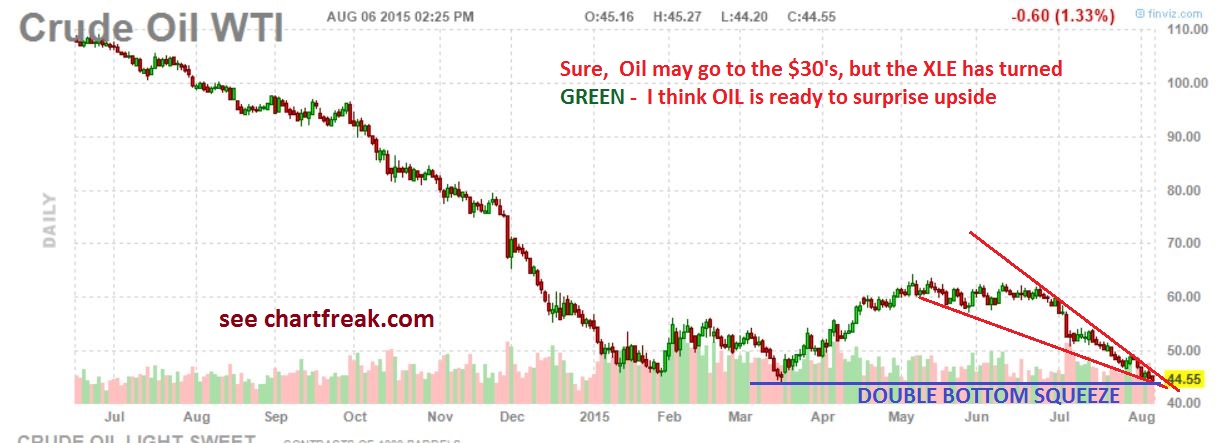 I am also looking at OIL, as mentioned in this mornings report. It is Squeezed at a double bottom and could surge & rally too. It is HATED & FEARED in the MEDIA, but if you look at Many energy stocks ? They are up ( See XLE) .