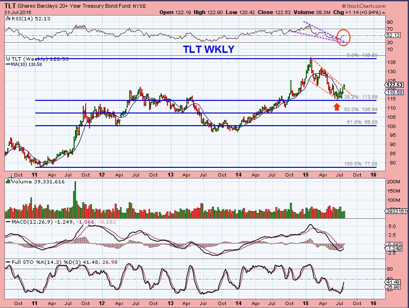 I think that the Bonds – TLT – are bullish in the weekly & Daily chart, so lets just look at that.