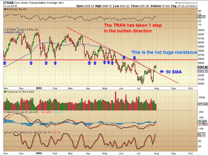 TRAN– I have pointed out that the Break Down of the TRAN should be noted. As the SPX consolidated sideways all year and looks like it is possibly rolling over, we now see an attempt at a recovery by the trannies?