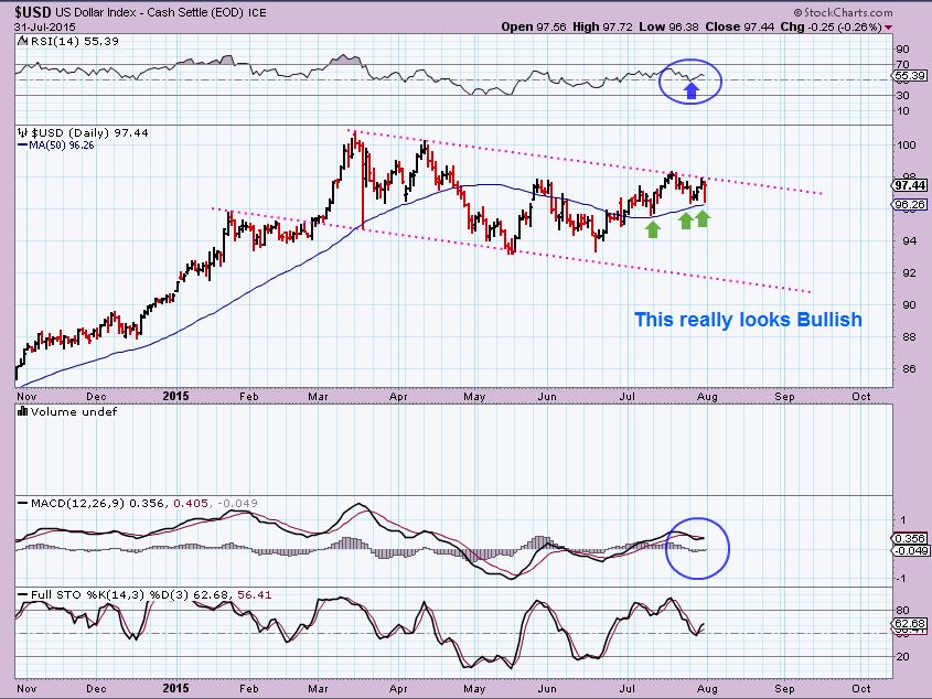 USD – the US Dollar basically looks like a bullish set up, but is at resistance . Also …