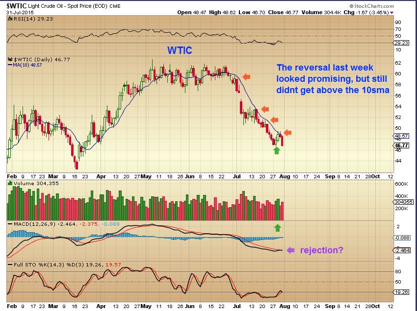 $WTIC – oil looked promising on last weeks 2 day reversal really, but it has yet to show me any real strength. Cycle-wise it is due for a low, but until we see strength, it is involved in a bearish drop. Do not go long with OIL under the 10sma.