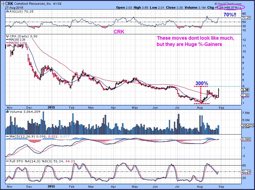 Energy stocks have been beaten down to ridiculous levels. When they are this low and people step in to buy because oil reversed (And maybe shorts cover),   you get those rip your face off rallies that can last for a bit.  DO NOT feel that it was up 10% today and you dont want to chase it.  They can go up 100% in a short period of time.  Lets look at some charts.