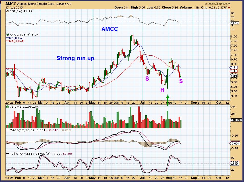 For example- We had a great run higher in AMCC in MAY, but then it fell apart. It looks possibly set up to run again, but as I am viewing things short term, I remain cautious longer term.