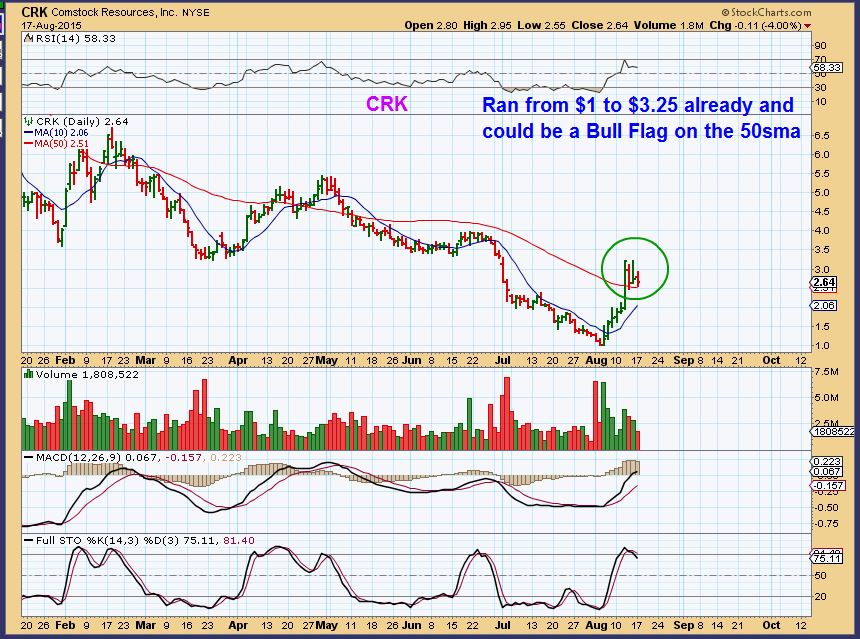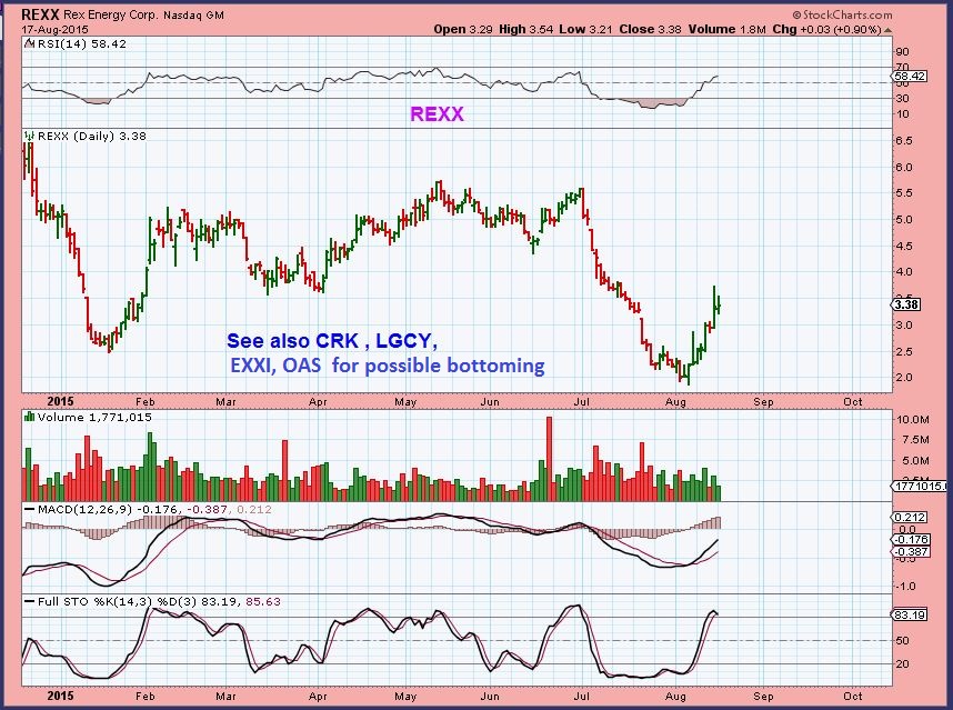 REXX– I just wanted to point out how some Oil/Energy stocks are setting up as bottoming despite Oils drop. See also CRK, EXXI, etc.