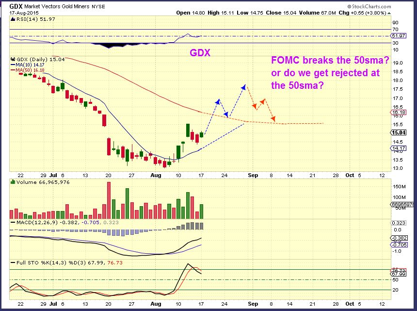 GDX – Also remembering that the FOMC minutes are being released tomorrow. We could see a surge through the 50sma or be rejected at it temporarily. I am still Bullish and I’ll show you why.