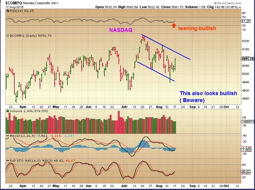 NASDAQ – Same story. This also looks like it wants to go higher. I actually see some good looking set ups short term, but some that I have seen recently have just broken down, so we need some follow through..