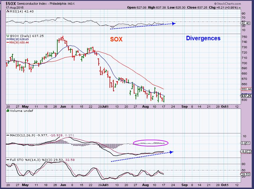 SOX – Short term the SOX looks as though it wants to bounce, I see Bullish divergences. Please keep the long term break down in mind if you are trading these markets.