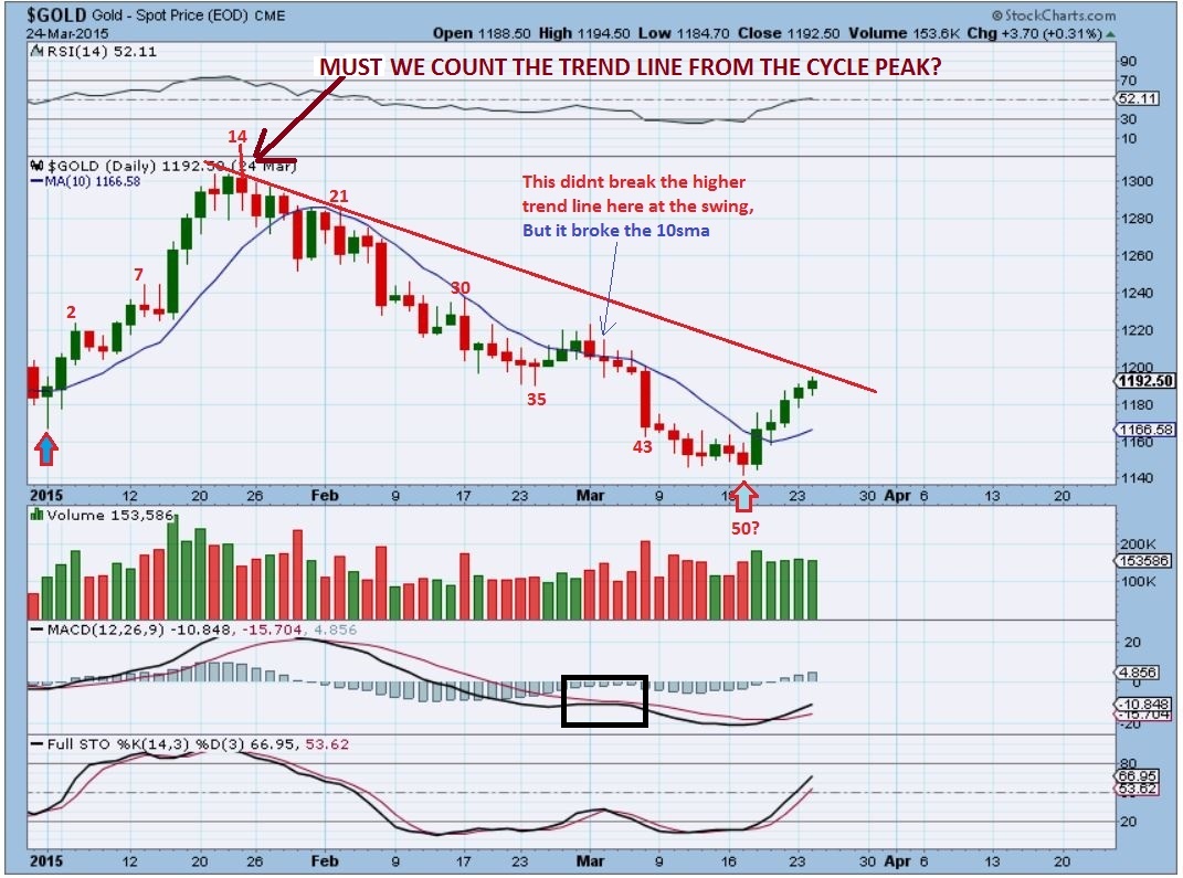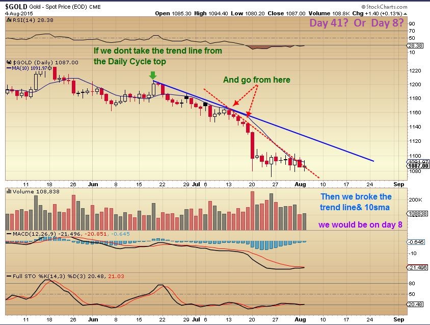 2. If we didnt use a trend-line from mid point in Jan – March, then we had a 50day cycle back in Jan thru March?  Then we can now too.  It too could include a quick drop, like we saw in February. We would be on DAY 42 if you erase the RED TREND LINE